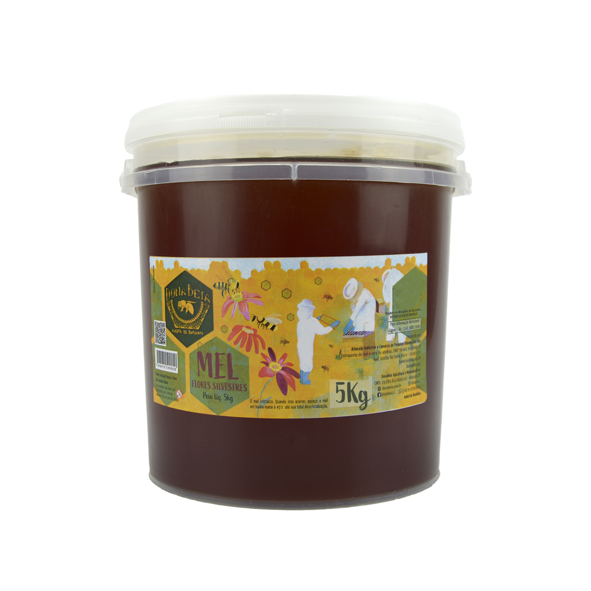 Mel proveniente de flores de mata silvestre da região da Cuesta de Botucatu, envasado em baldes plásticos de 5kg. A diversidade de flora da Cuesta de Botucatu traz um mel silvestre excepcional, extremamente saboroso e nutritivo. Em função da sazonalidade e da localização de cada apiário, cada lote é uma surpresa de cor, sabor e aroma.